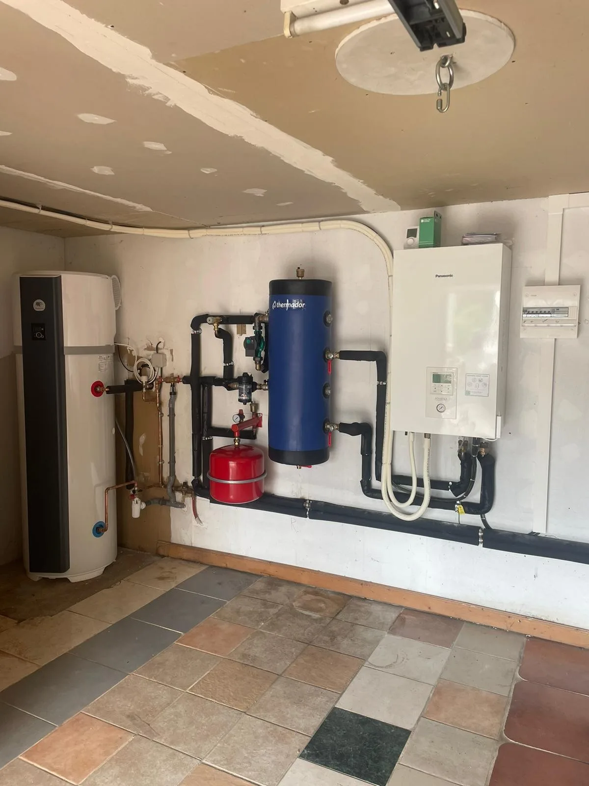 Découvrez nos chantiers de pompes à chaleur, climatisations, salles de bain et plomberie en Sarthe et Mayenne.